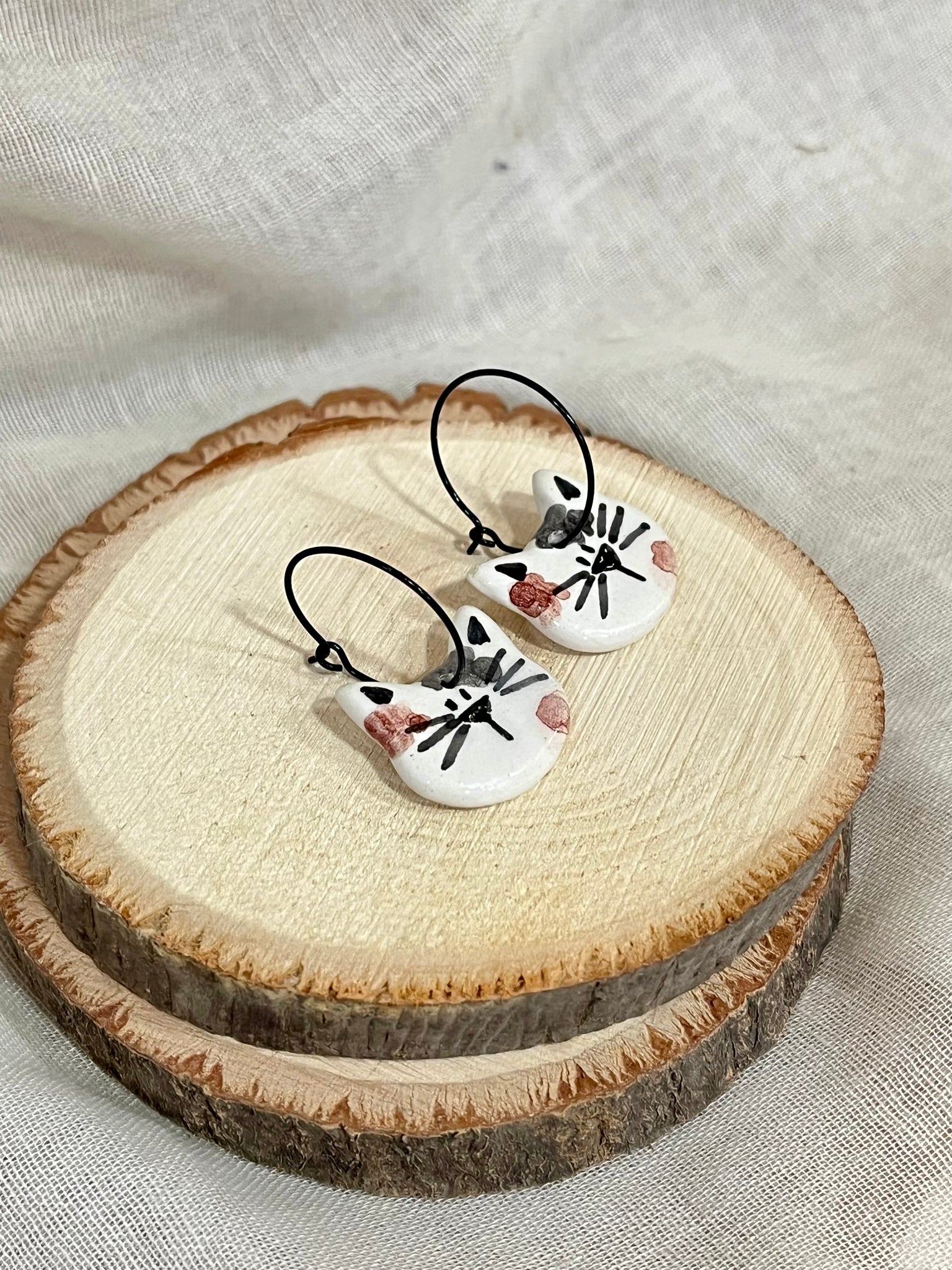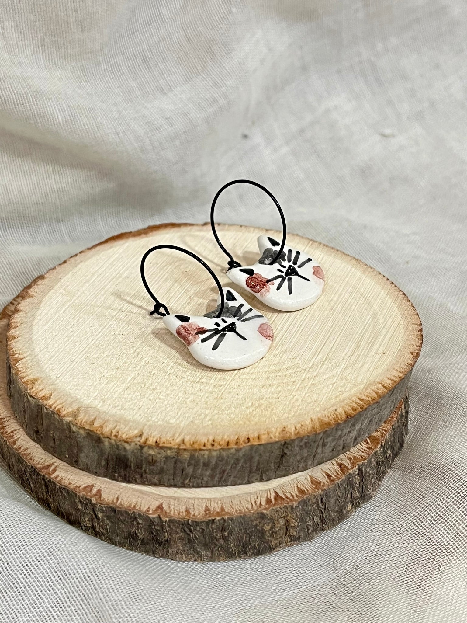 Preciosos pendientes de cerámica , pieza realizado a mano en mi taller, no hay dos iguales, todos son diferentes y es lo que hace más especial estas pequeñas joyas cerámicas.