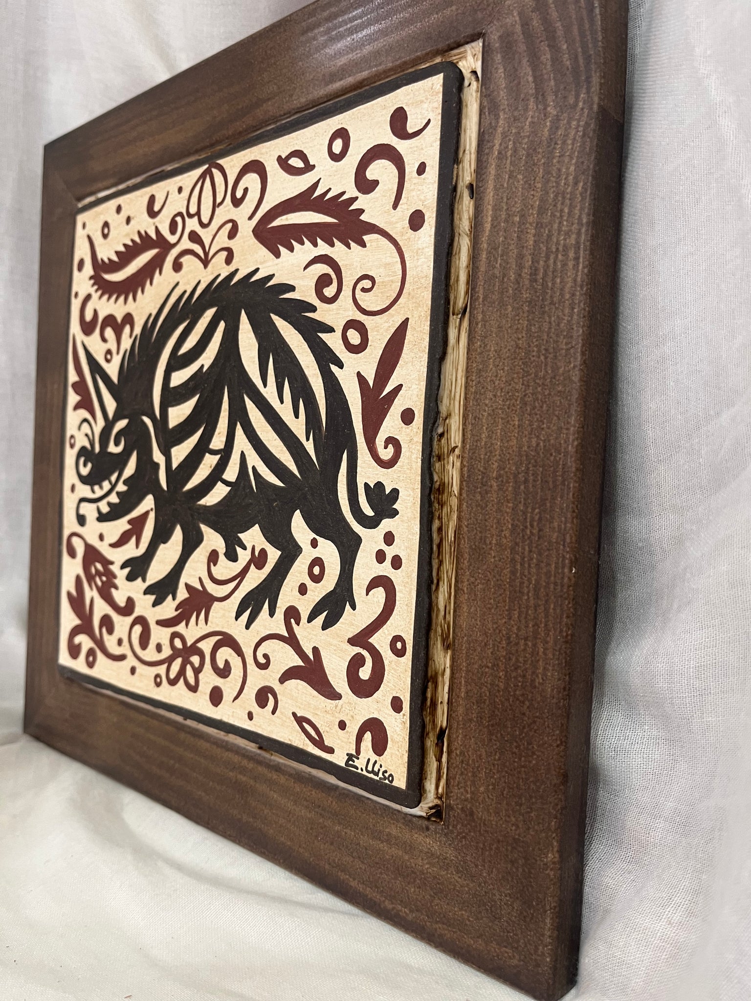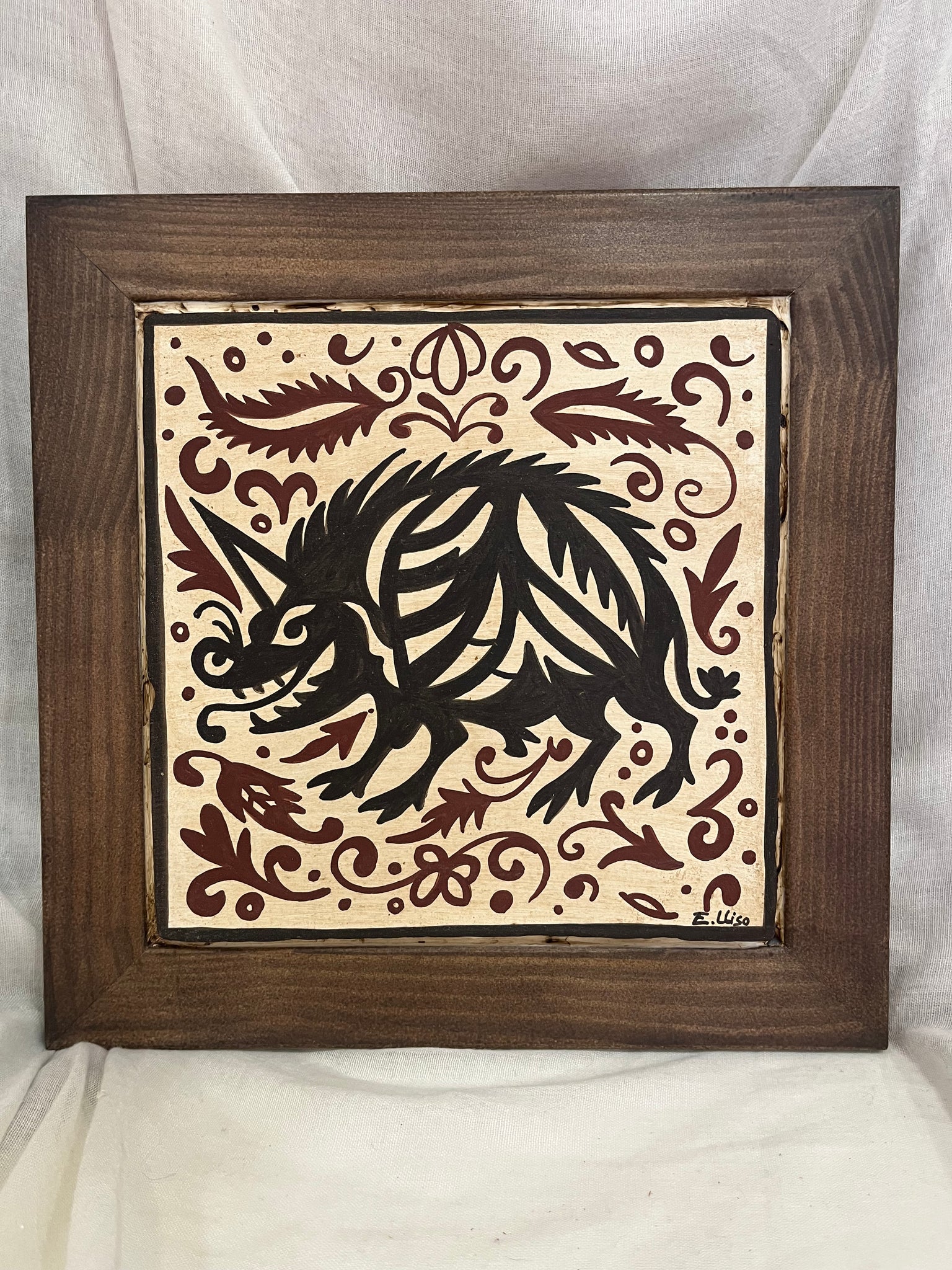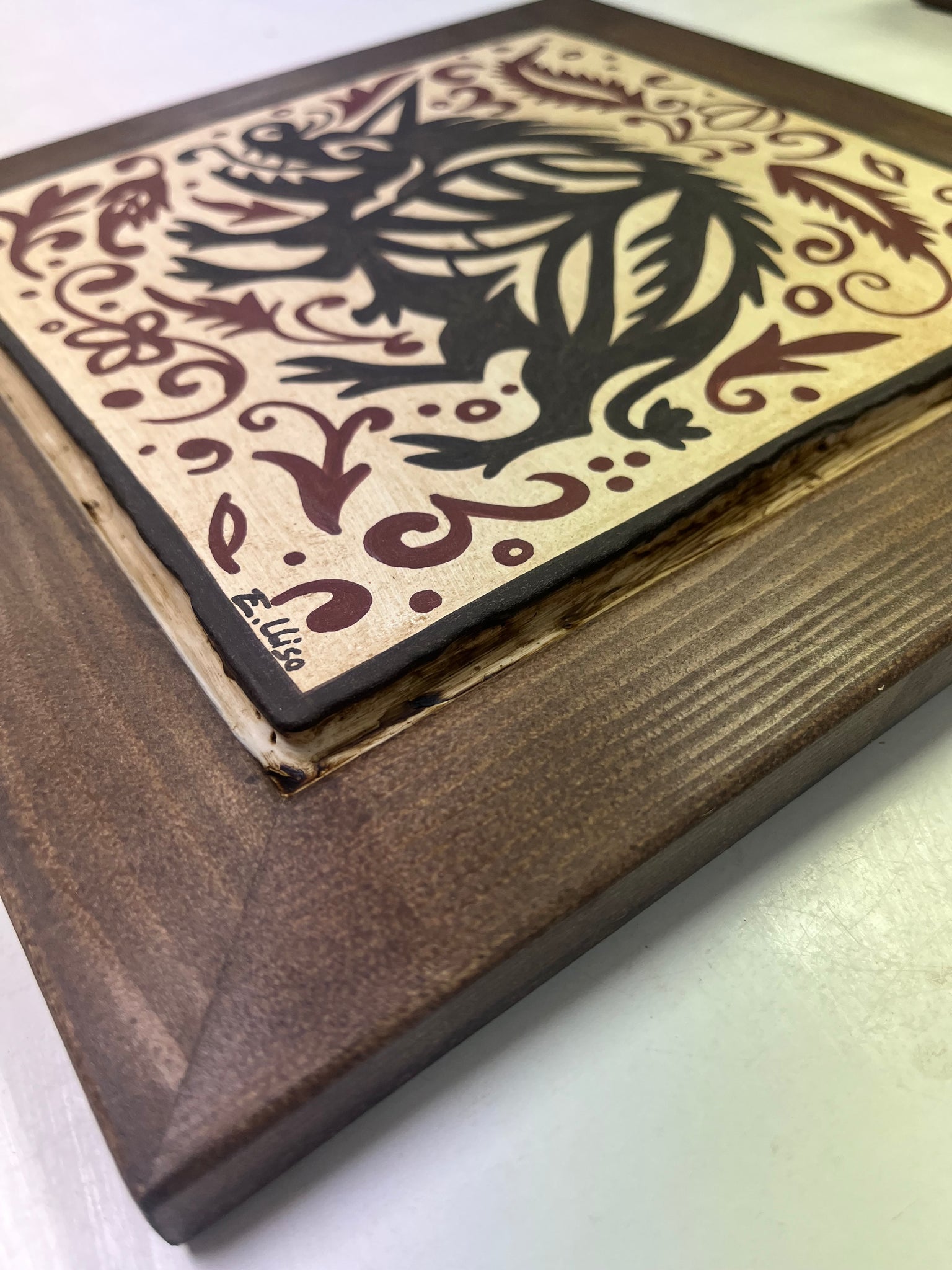 En este taller, realizamos reproducciones fieles a los motivos clásicos. Estos “socarrats” son fieles a la estética medieval. La confección manual de las baldosas y el pintado a mano, confieren a cada pieza un  carácter único e irrepetible. Finalmente realizamos un enmarcado en madera o hierro forjado, que da el acabado medieval definitivo.